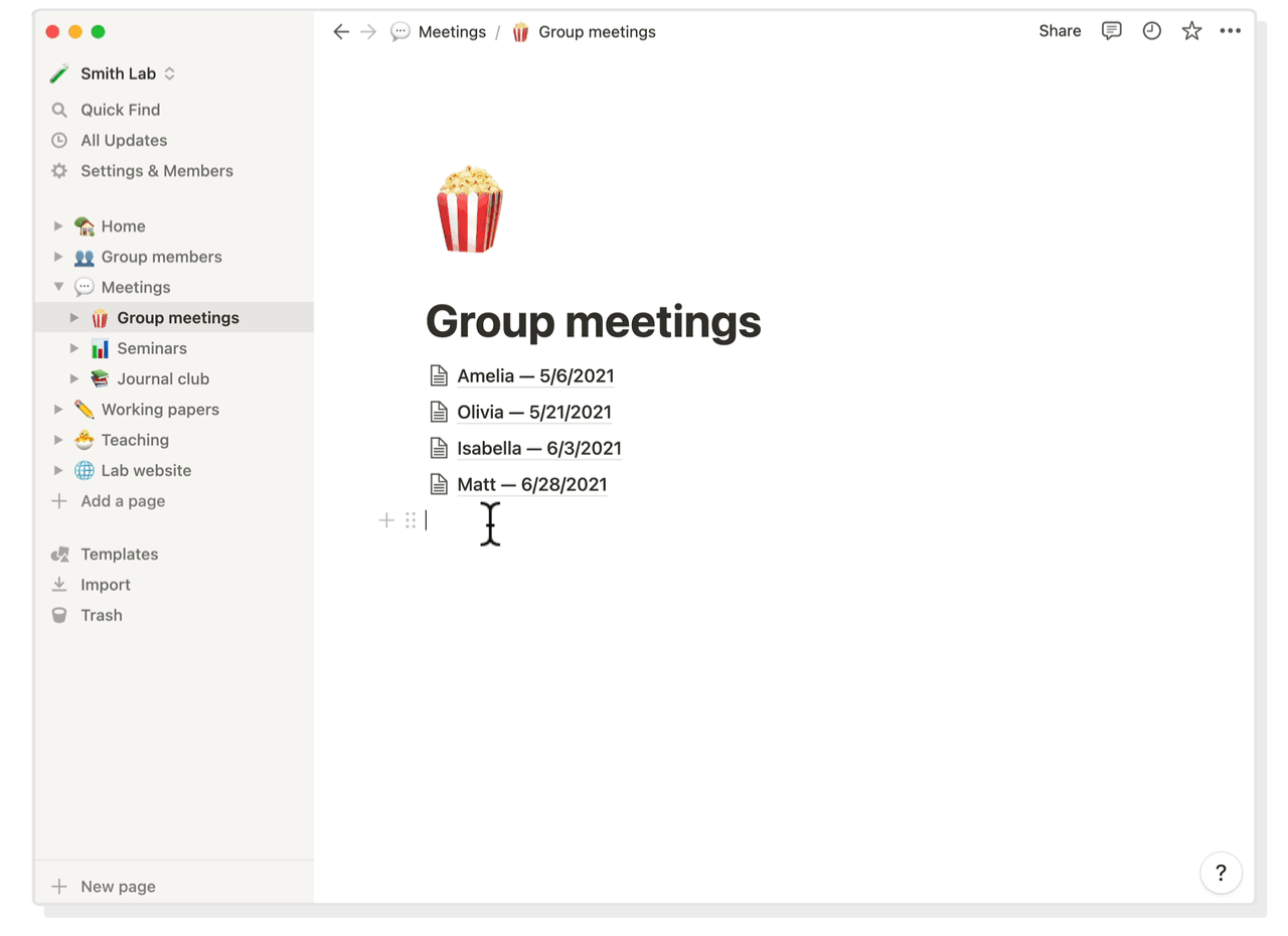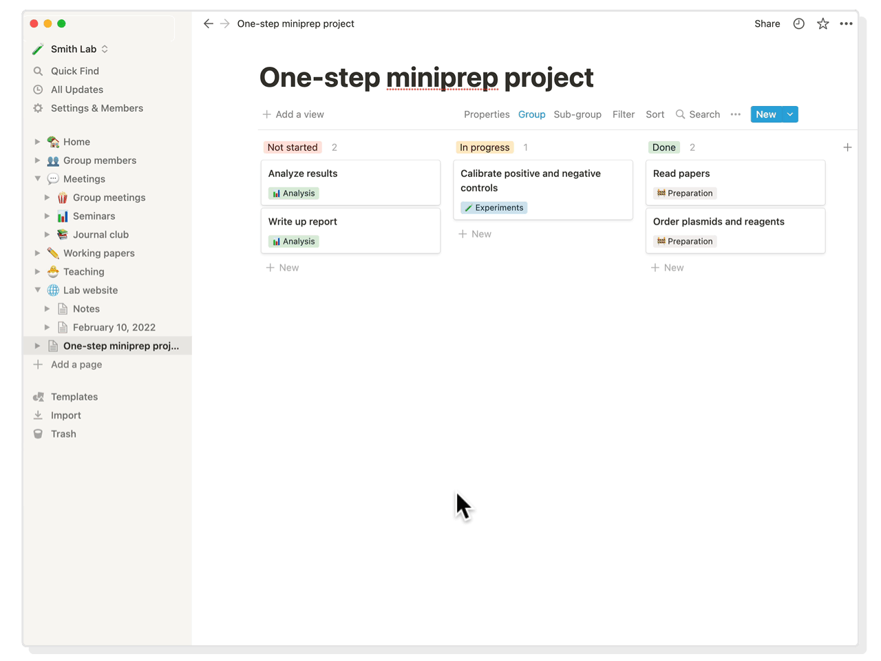 A good lab website is important—but, let’s face it, it takes time to curate a site. That’s why so many lab websites are outdated. Notion allows you to publish documents with just one click.