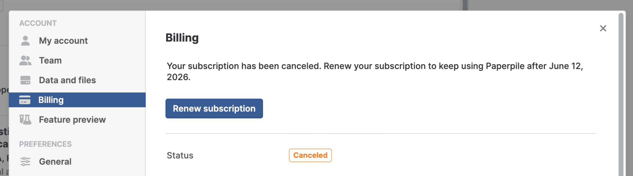 • You can use Paperpile until the end of the current billing period.