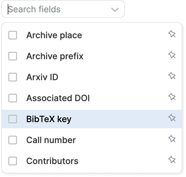 Each reference type—such as journal article, book, or preprint—has its own set of default fields that appear in the metadata edit dialog. These fields display whether they contain values or not, giving you a complete view of what information you can add.