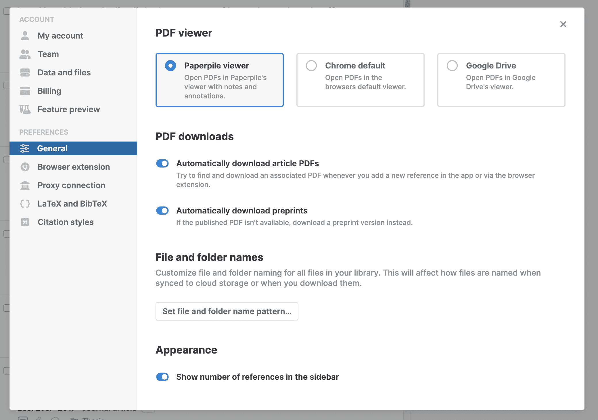 We continuously add new features to Paperpile. To activate them before public release, click your profile picture on the top right and go to Settings > Feature Preview and select the features you’d like to test.