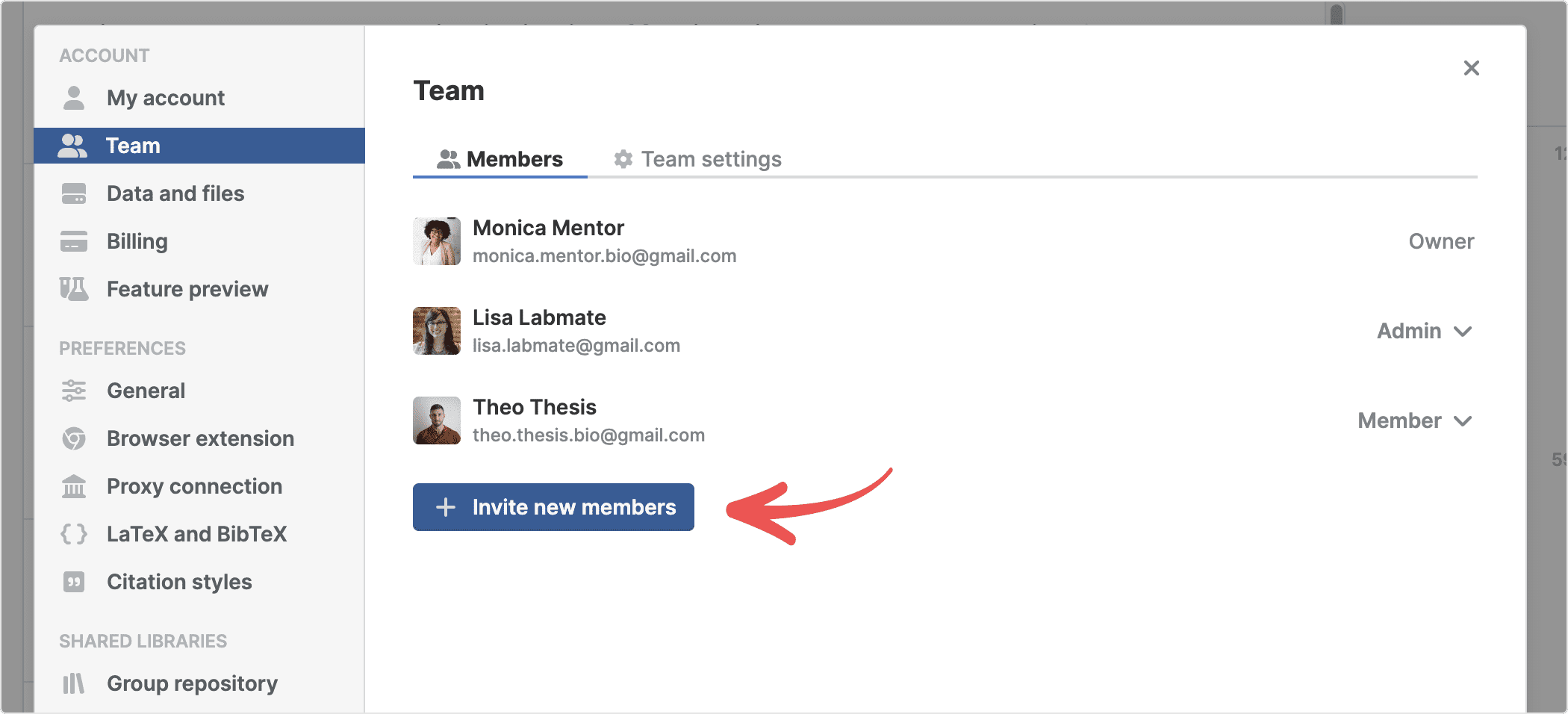 • Paperpile will send an email with instructions on how to join your team. If somebody already has a Paperpile account, they can join with one click. If they are new to Paperpile they are sent to a sign up page and will be put on your team as soon they sign up.
