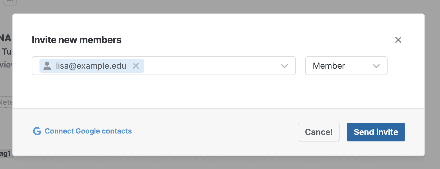• Add one or more emails of users you want to invite. Select their permission level and click Send invite