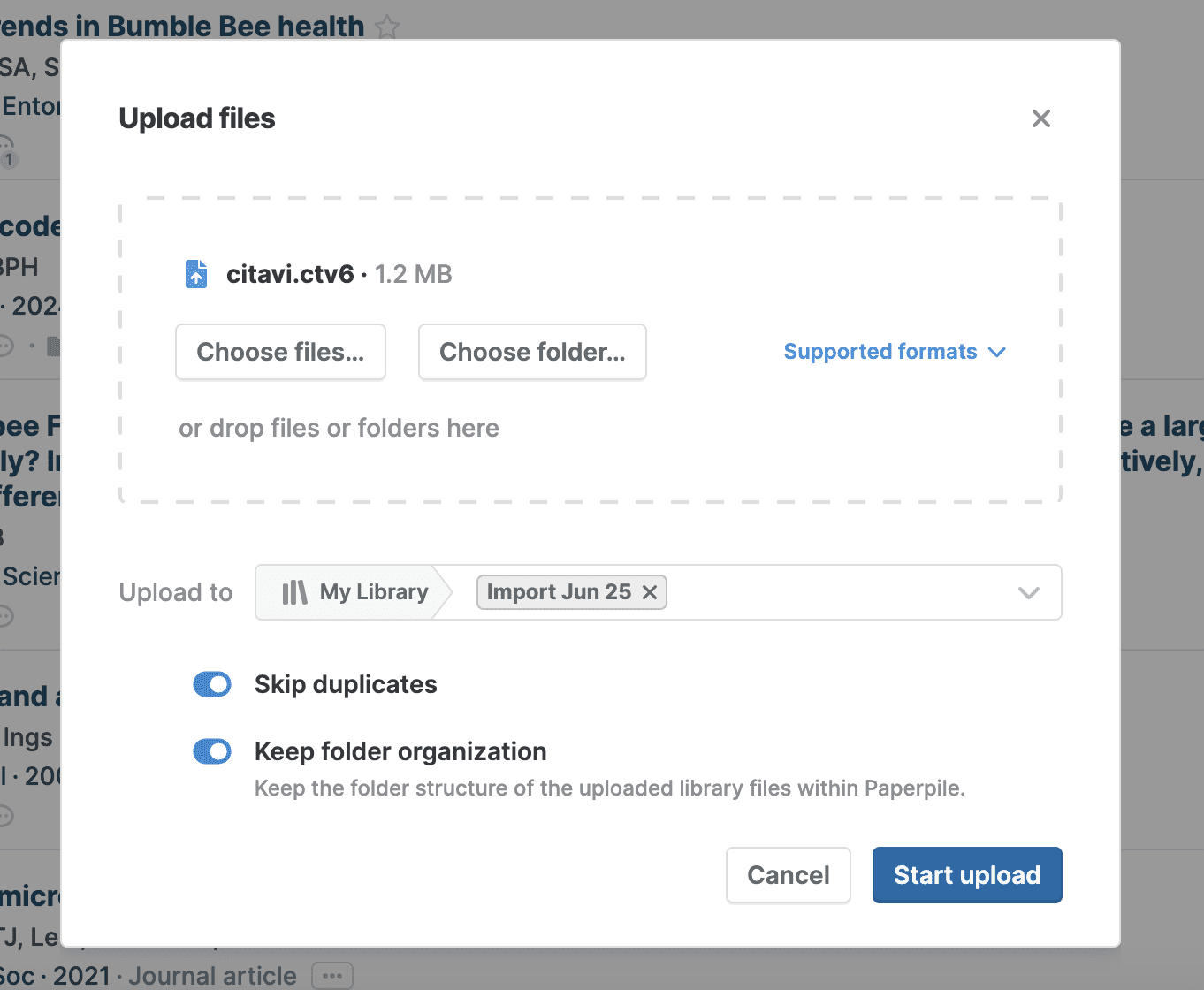 - Once the zip file is extracted, you should see .ctv5 or .ctv6 files. These files can directly be uploaded to Paperpile.