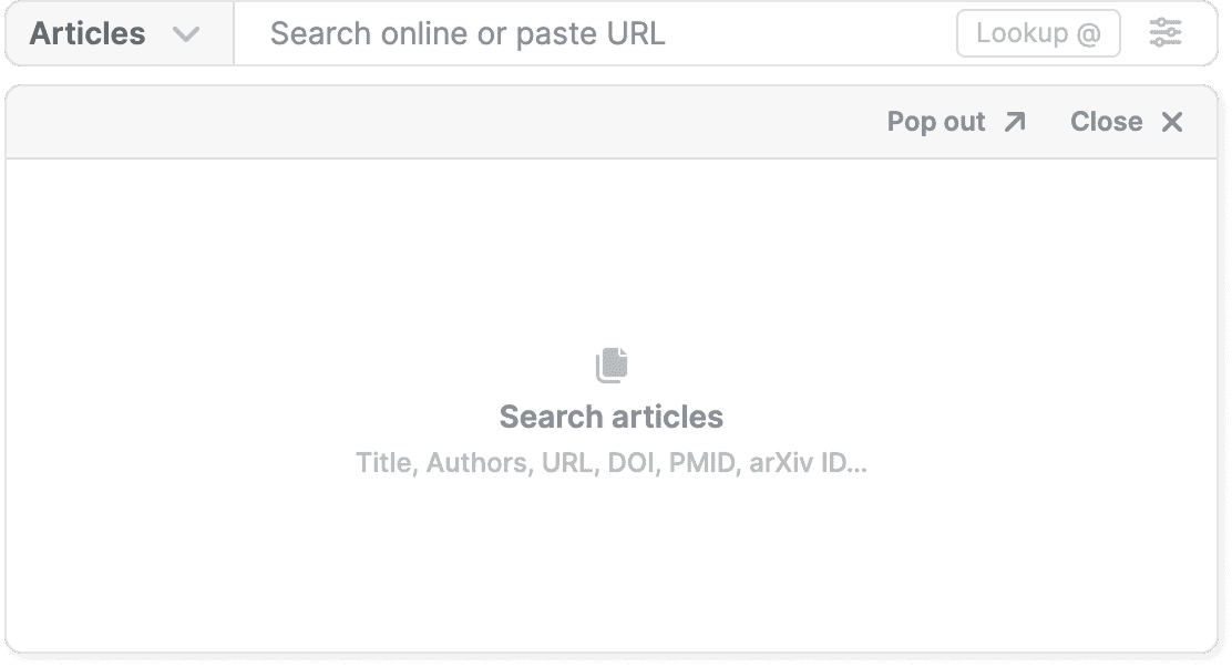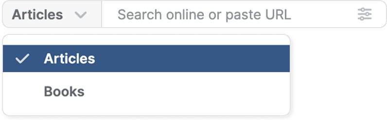 Search for articles and books directly from Paperpile. The online search connects to multiple databases to help you find and add references to your library quickly.