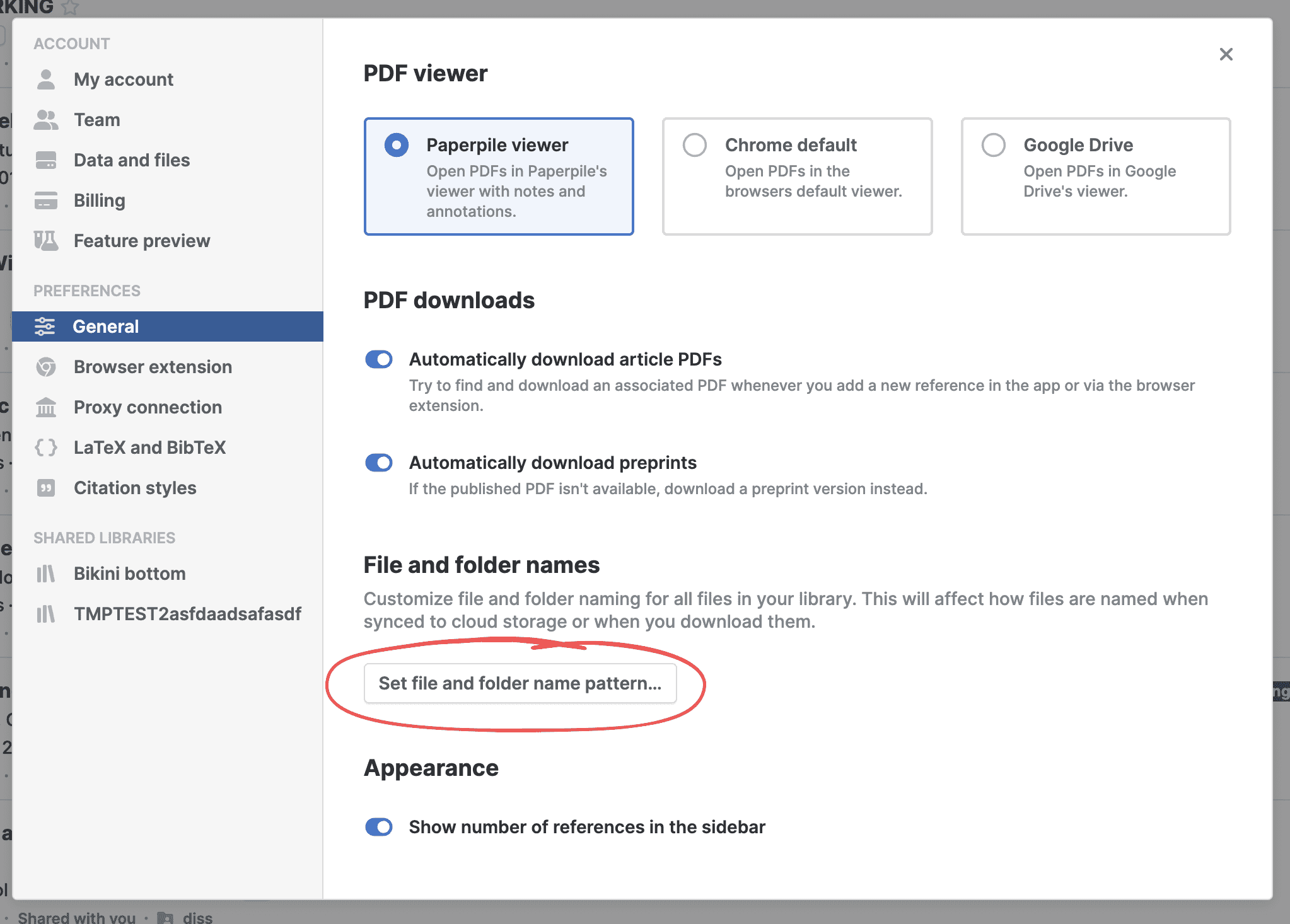 - You can change how files are named and organized. Go to Settings > General and click Set file and folder name pattern…