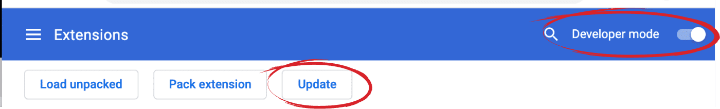 Go to the three-dot menu on the top right > More Tools > Extensions, switch on Developer mode, and then click Update.