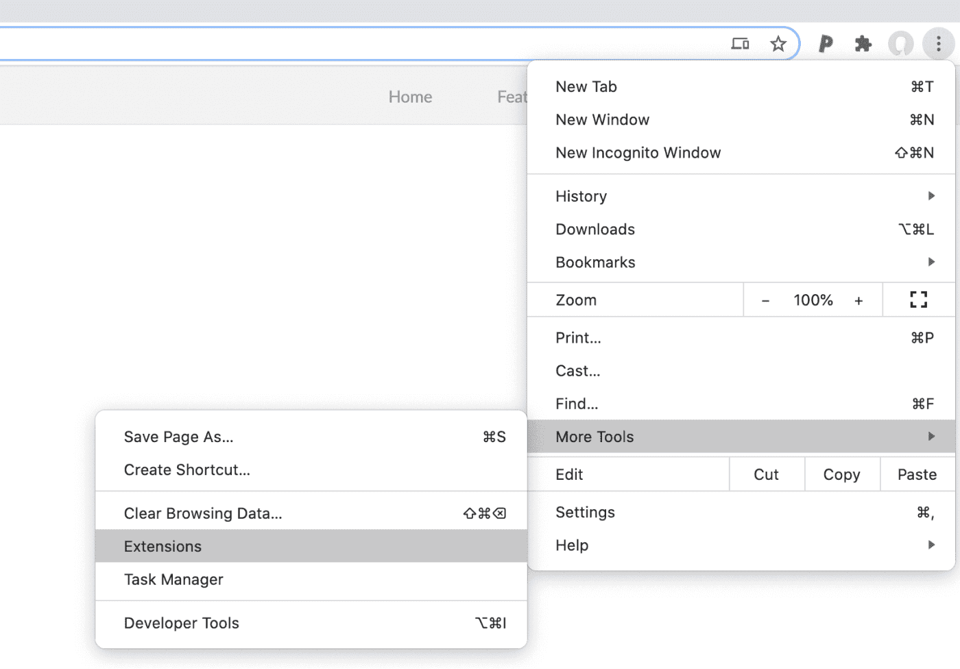 You should make sure that the Paperpile Chrome extension is always enabled. To verify this, go to the three-dot menu on the top right > More Tools > Extensions:
