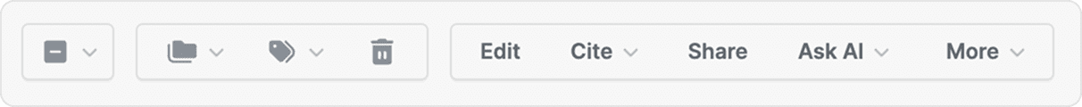 The Paperpile web app is organized into a few main areas that help you manage your references efficiently. Understanding these interface elements will help you navigate and customize your library.