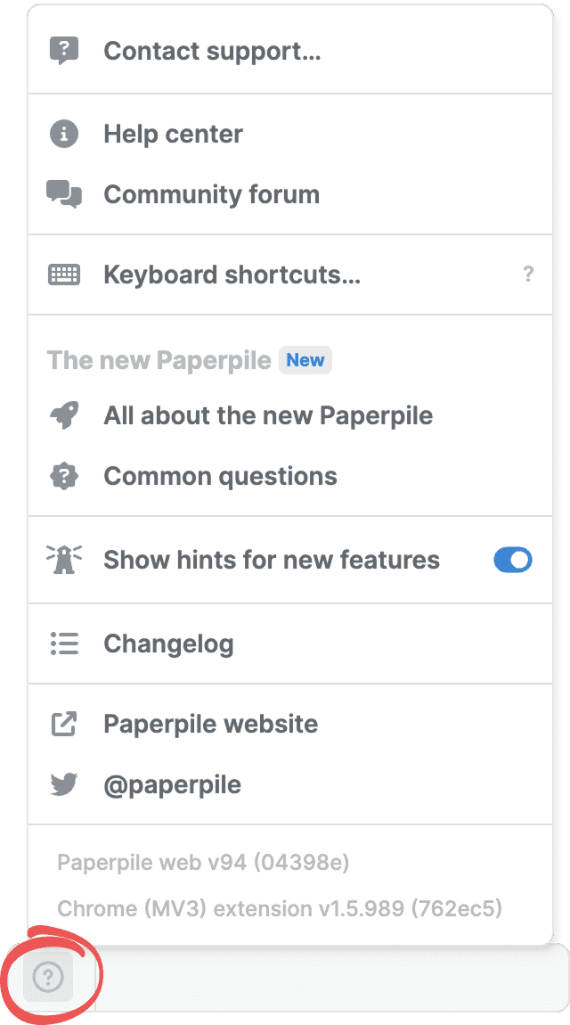 Click the question mark in the bottom left of the sidebar to access the Help Center, Changelog, Community Forum, keyboard shortcuts, and to contact support.