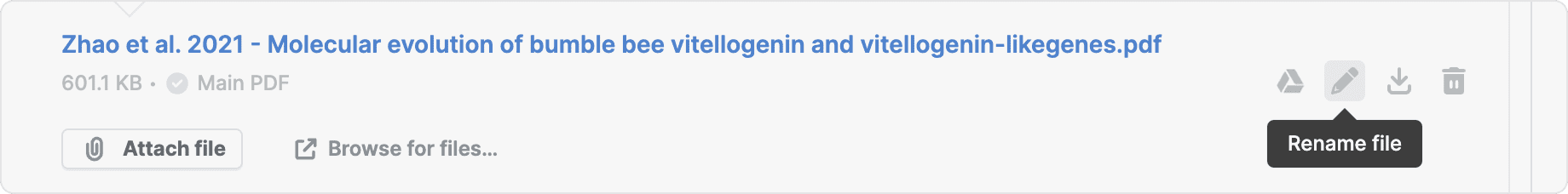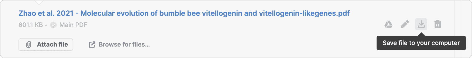 Attach PDFs, supplementary materials, and other files to references in your library to keep all your research materials organized in one place. You can manage attached files directly from the files panel, making it easy to view, download, and organize the documents associated with each reference.